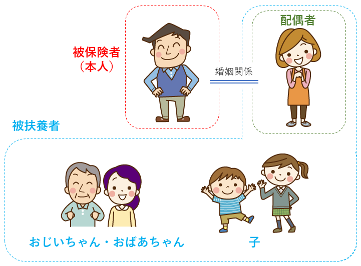 被保険者に扶養されているため、健康保険に加入できる家族です。(配偶者・子・孫・兄姉弟妹・父母など)